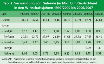 Getreideverwendung in DeutschlandAus "Äcker könnten vier Milliarden Menschen mehr ernähren", in: Spiegel Online, 2.8.2013