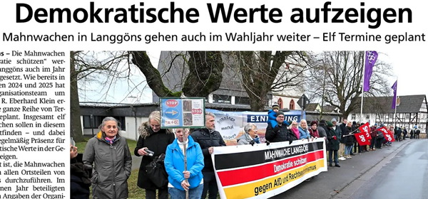 Wir als Netzwerk für Demokratie und Toleranz, Lumdatal, und weitere Gruppen möchten der Veranstaltung dieser völkisch-nationalistischen, rechtsextremen und populistischen Partei unsere demokratische Überzeugung entgegensetzen.