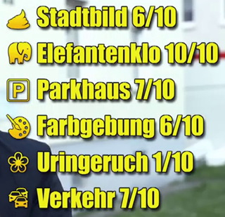 Abbildung: Screenshot aus "Mission Schandfleck: Gießen" mit Abwertung wegen Autolastigkeit